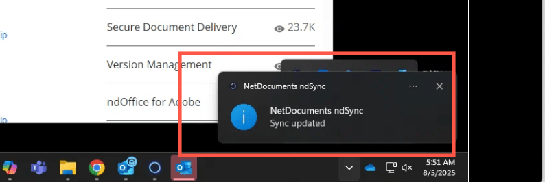 Step 7. ndSync will create a local copy of the matter in your computer’s ndSync folder, typically located at C:\Users\<User>\ndSync\.