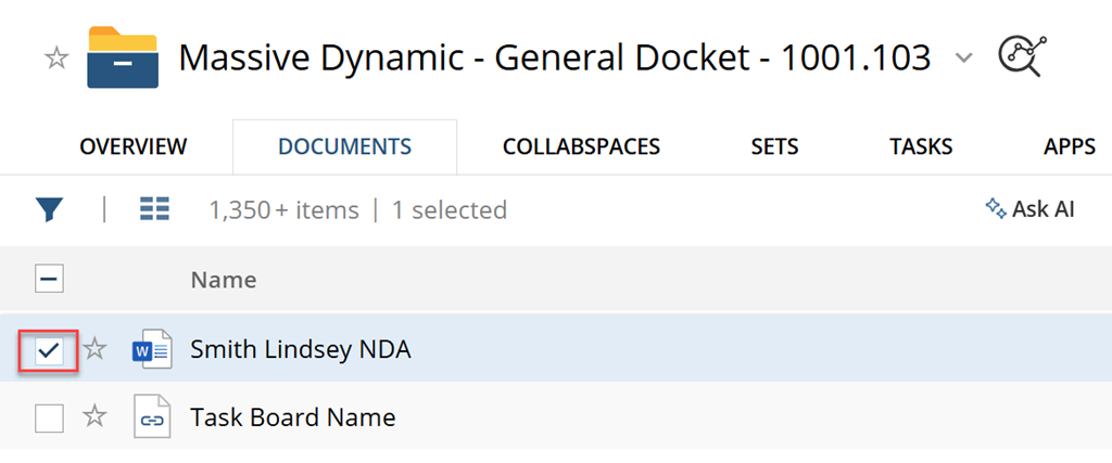 Step 2: Check the Box next to the Document Name