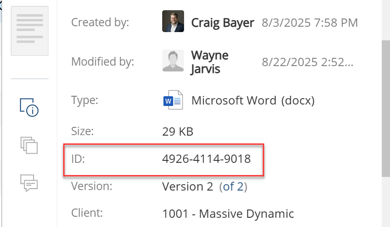 - Integrations: Tools like DocuSign, Clio, or custom APIs may use the Document ID to link documents.
