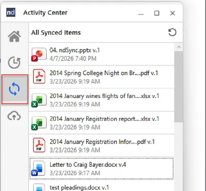 After saving the registry changes, restart ndOffice. The All Synced Items tab will now appear in the ndOffice Activity Center.