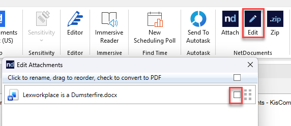 If you’ve ever pulled a document into an Outlook email using ndAttach and then clicked Edit → Convert to PDF only to have the conversion fail, you’re not alone.